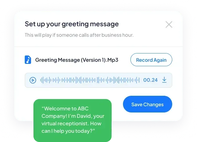 Receptionist answers calls when you're out of office, closed or just busy on the phone. All missed calls and voicemail transcriptions are delivered to you in a centralized inbox.