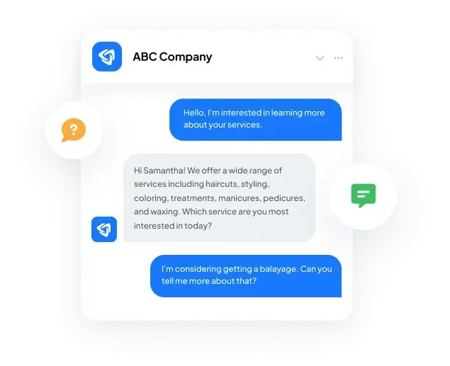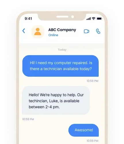 Be there for your customers, even when you’re not. Our AI Messaging Bots capture your missed calls and turns them into text conversations, so you can schedule appointments, answer questions, and close deals faster.